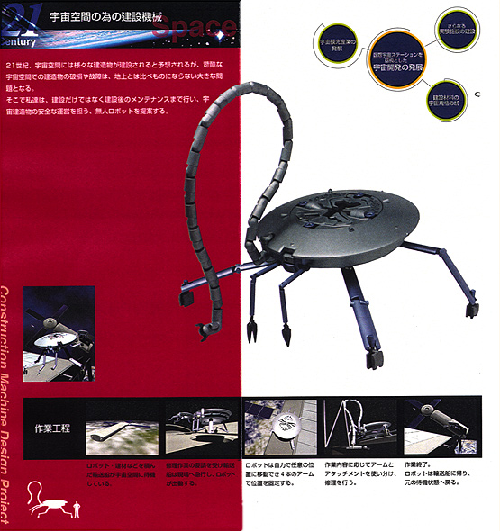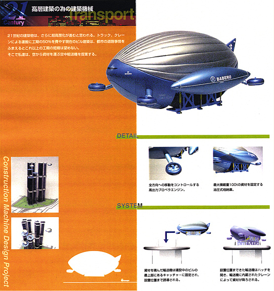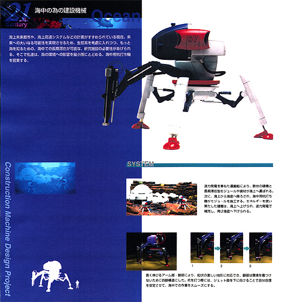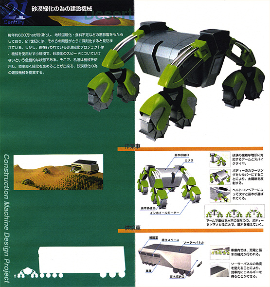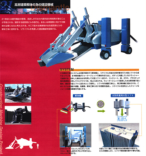 建設・建築における環境や、機器の問題点をオブザベーションし、「21世紀の建設機器」と題し、人や都市にやさしい建設機器の提案を行う。