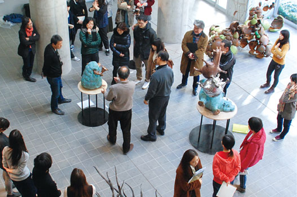 学内、学外で展示の機会を数多く設けています。4年次には、キャリアパスの一環として、学外での展示会を企画・運営する試みも行い、作家として活動する素地を固めていきます。さらに、産学官共同研究の取り組みも始めています。