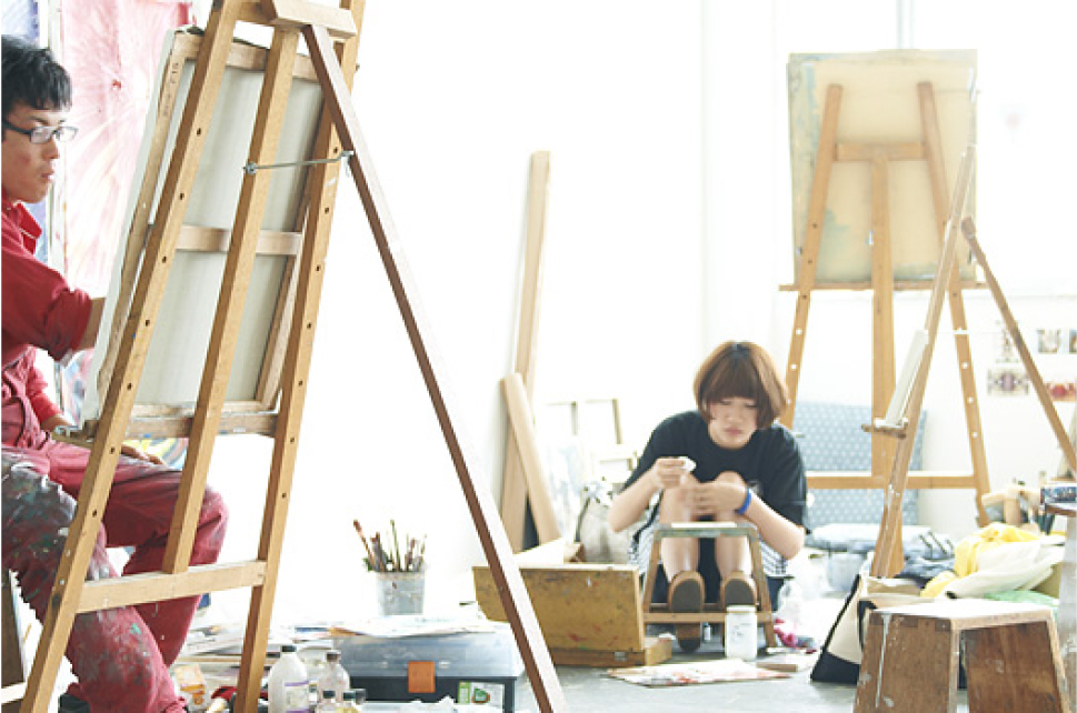学生たちが創作活動に専念できるように、アトリエなどの設備の充実を図っています。授業時間にとらわれず、原則的に休日(要申請)や夜間(21時まで)を問わずいつでもアトリエを利用でき、充実した制作環境が自由な発想と表現を育んでいます。