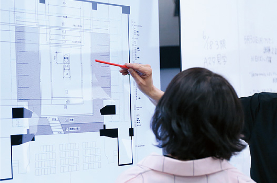 製図・模型・コンピュータ演習や舞台美術・映像美術・照明・衣裳まで本格的な実習を学内で行なうことができます。3年次以降のゼミ室には、学生個々の研究デスクが完備しています。