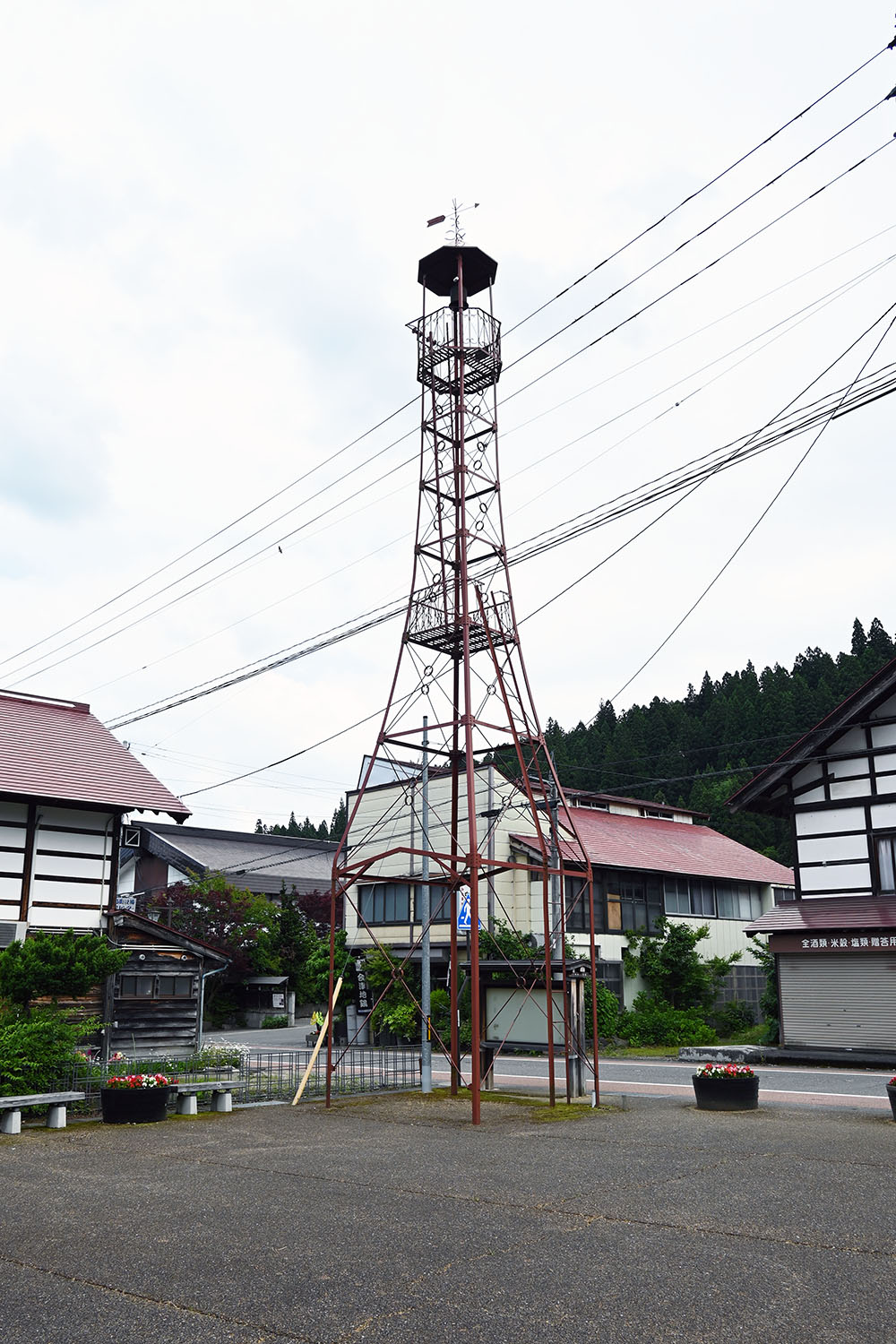 三島町役場の向かいにある公園の敷地内に建つ大型の4本脚。直下に小屋があったものと思われる。きれいに維持されているが、近くにポンプ小屋は無く、引退後に保存されているものかもしれない。