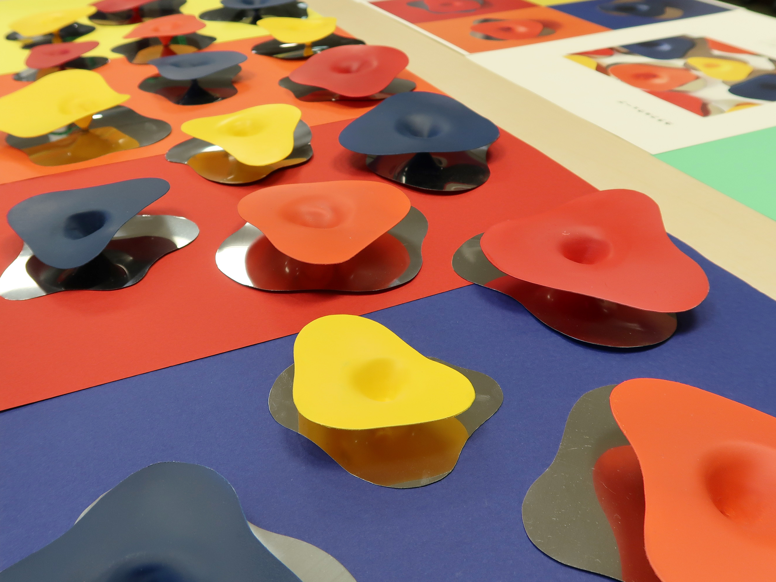 学生による提案の一つ、「カラフルウェーブ」は、色彩が限られがちな船内空間という課題に対し、花のようにインテリアへ彩りを添えるアートプロダクトです。花をモチーフにした有機的な曲線の金属パネルが光や色を様々に反射し、見る角度によって空間の表情を豊かに変えます。この視覚的な変化で船員の気分転換を促し、ウェルビーイングの向上につながる心地よい空間のあり方を提案しました。