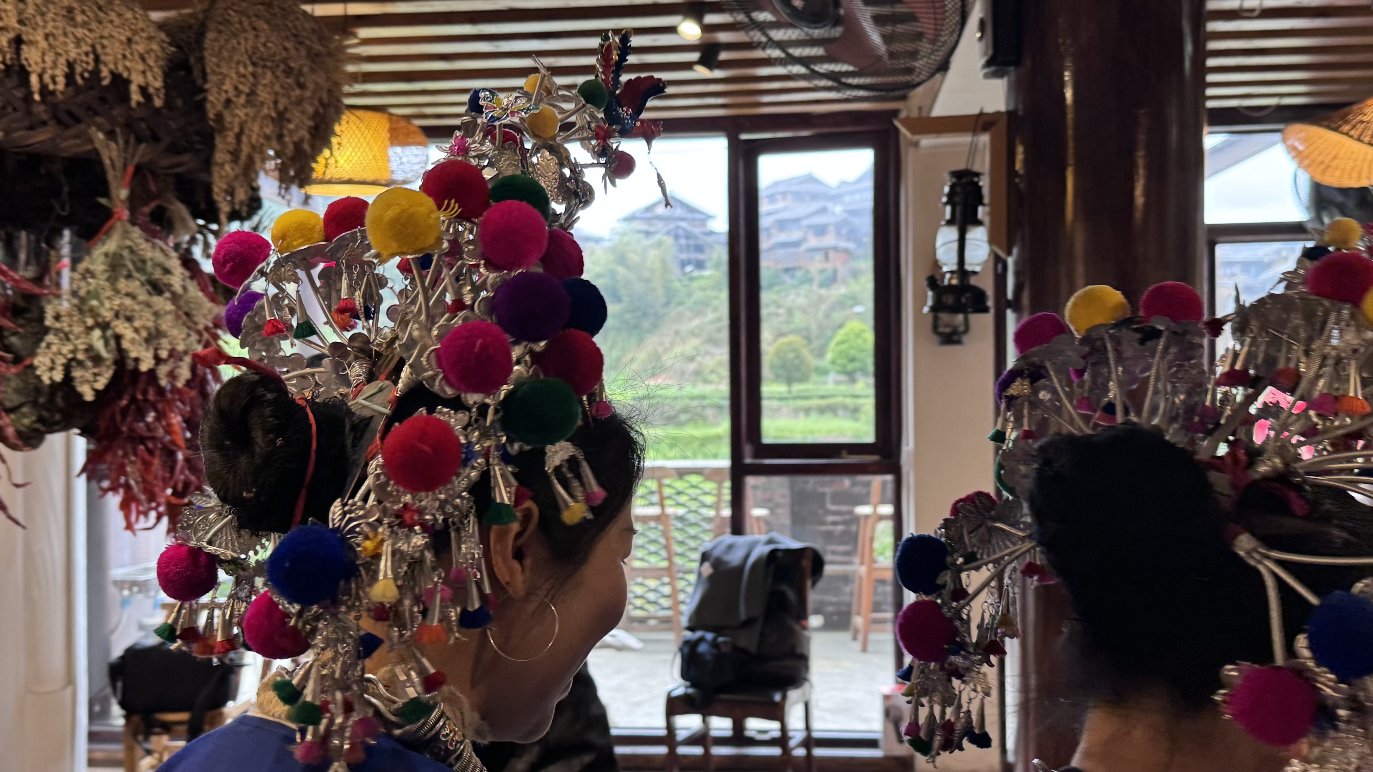 09-x-その他,03-c-幾何学・抽象,中国 トン族(侗族 kam) ,桂林(中華人民共和国広西チワン族自治区),大墟古鎮景区、塀衣装と髪飾り,布、金属,2025年,佐々木 2025_00116_03_chaina_kam_x_hokamon_cc_kikagaku.jpg
